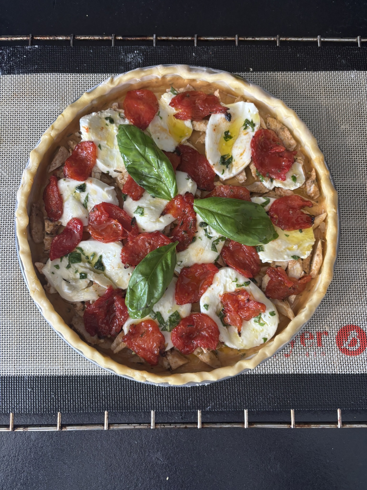 Tarte au poulet, mozzarella, tomate